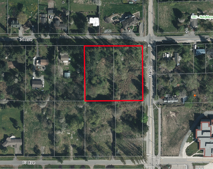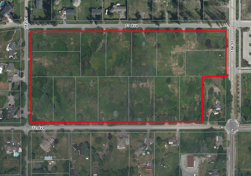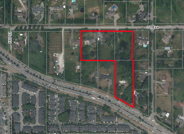 One of Surrey’s largest land assembly projects consisting of 14 individual lots. Row of lots located along 72 Ave have an existing development application proposing nine 6-storey buildings, about 742 units total.